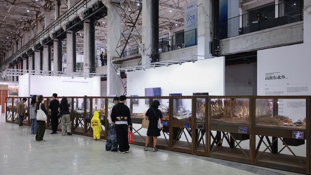 在展场中,一个个木盒子构建而成的《高密东北乡》颇为引人瞩目,这是中国美院跨媒体艺术学院教授牟森与媒介展演系33位师生历时140天共同完成的21米微缩场景模型。讲述了作为江苏大剧院原创话剧《红高粱家族》项目的组成部分,在“演出之外,展览何为?”的议题,在此,自然博物馆标本展柜作为展示形态。二十个“景箱”生动展现文学作品中的标本式图景,为文学经典的视觉转译探索全新的路径。