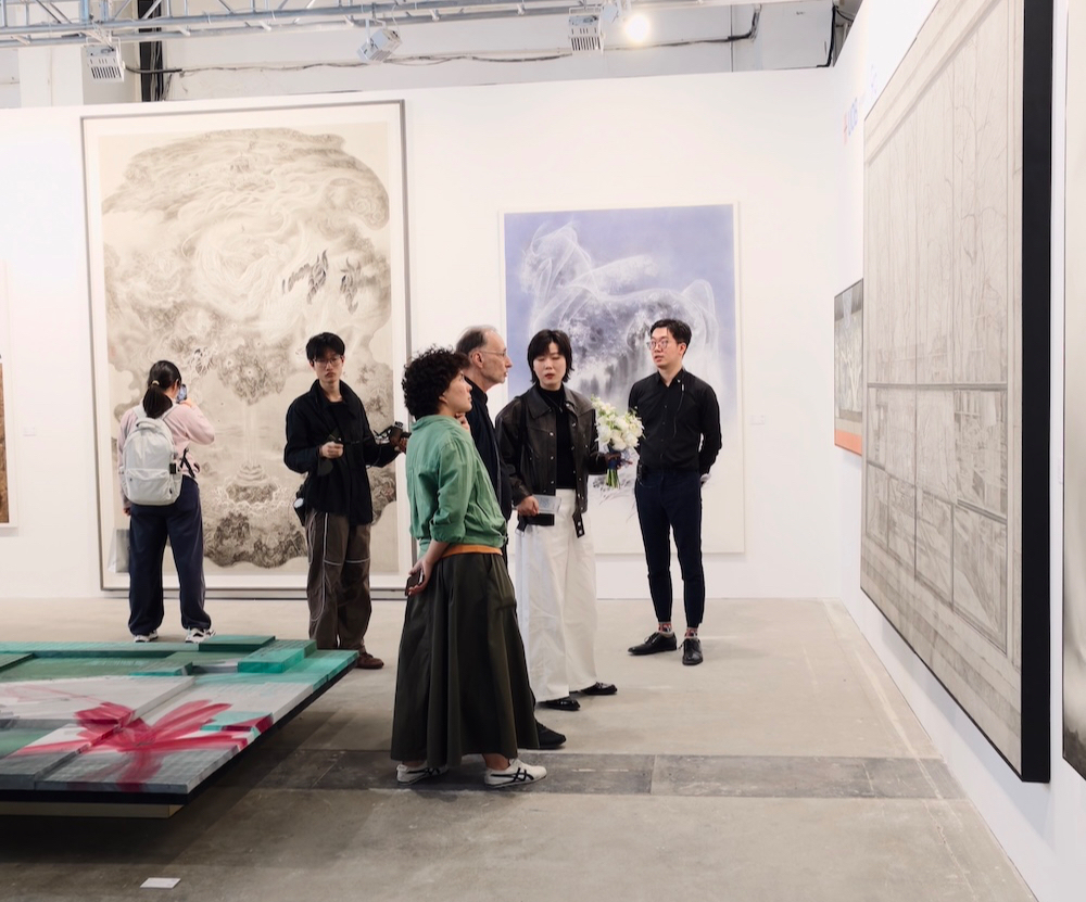 香格纳画廊劳伦斯·何浦林正在与年轻创作者交流。