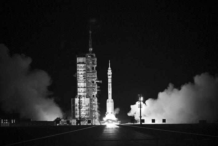10月31日晚,搭载神舟二十一号载人飞船的长征二号F遥二十一运载火箭在酒泉卫星发射中心点火发射。新华社记者李志鹏摄