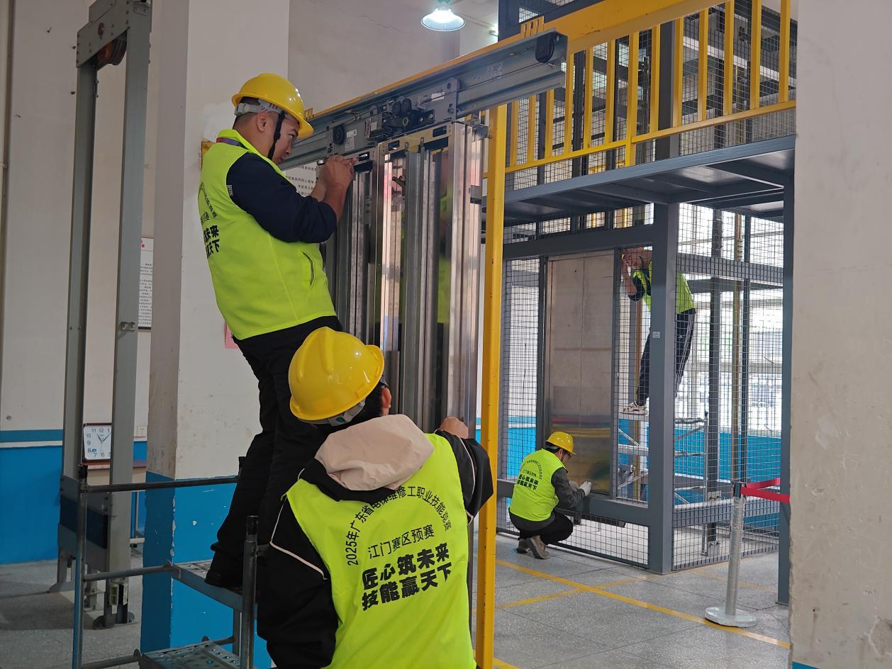近日,2025年广东省电梯维修工职业技能竞赛江门赛区预赛在台山市技工学校圆满收官。本次竞赛由江门市市场监督管理局主办,台山市市场监督管理局、广东省特种设备检测研究院江门检测院、江门市特种设备协会联合承办以及台山市技工学校协办,吸引了全市18家企业21支队伍同台竞技,以精湛技艺角逐全省决赛入场券。