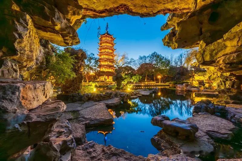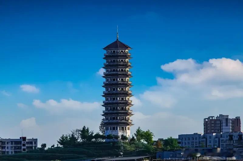 广西贺州贺街的文笔塔,又名魁星楼,建于清乾隆五年(1740 年),历史感满满。它高五层共 27 米,占地约 80 平方米,塔身呈六角形,用大青砖砌成,表面却是红色,上盖绿色琉璃瓦,门额有黑色“魁星楼”三个大字,外观很是独特。 塔顶层原来有个铸于南汉大宝四年(861 年)、重 750 公斤的大铜钟,造型精美、纹饰华丽,上面还有 1288 个铸文,可惜 1963 年被迁到八步灵峰公园了。如今去贺街古镇,看看这座文笔塔,能感受它承载的历史韵味。