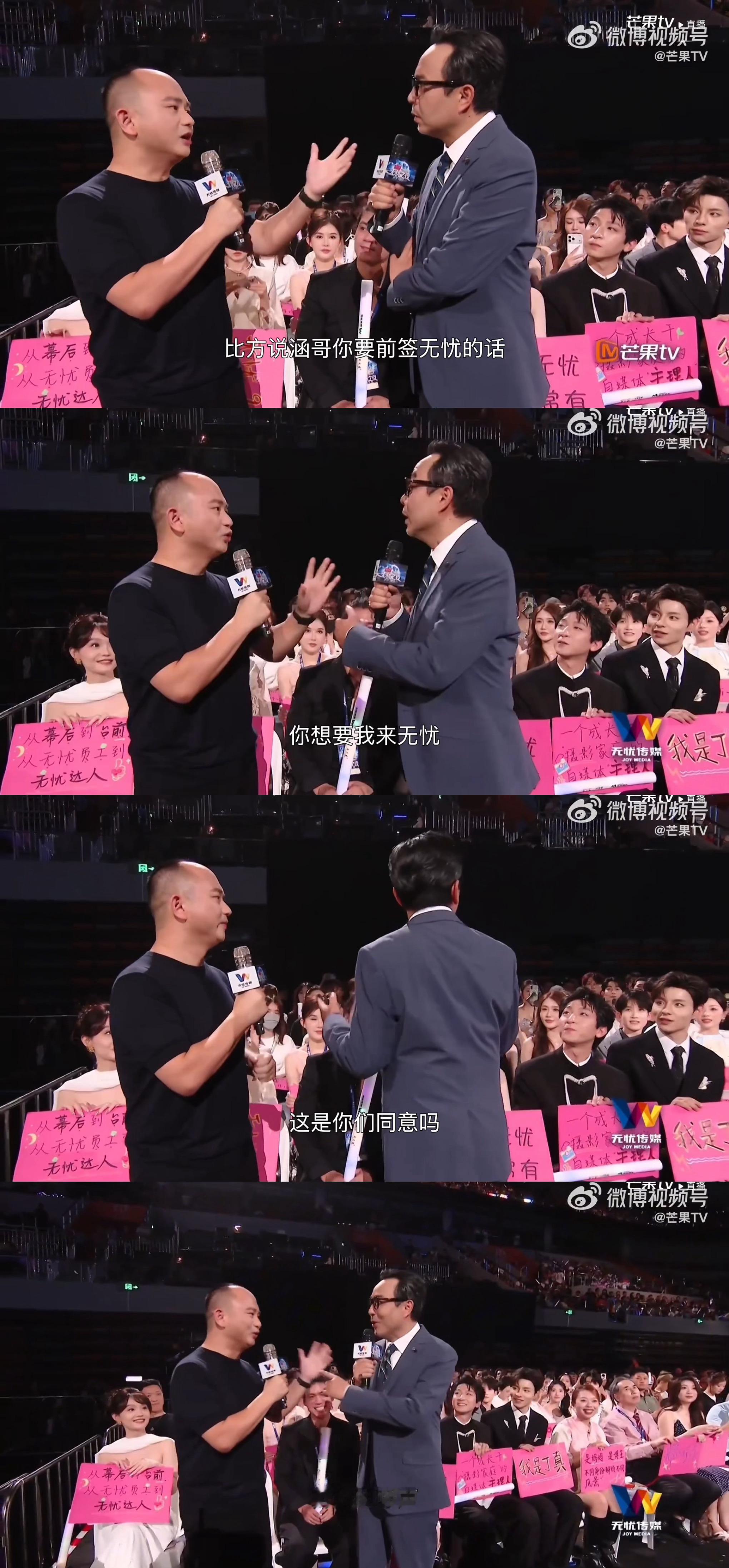 无忧老板邀请汪涵加入无忧 这波现场挖人太劲爆!雷彬艺直接向老乡汪涵递橄榄枝,直言“从小看湖南卫视长大”。还当场演示定制化服务:专业团队+全平台达人联动,把涵哥安排明白。这是要解锁新身份的节奏?