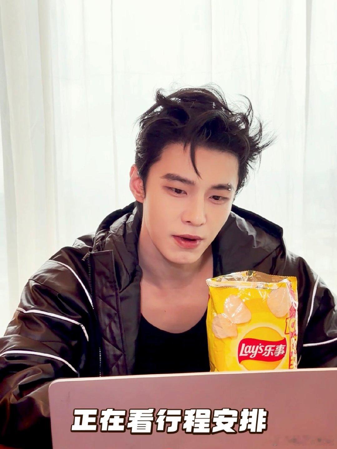 何与递的乐事谁不想接 何与开工前补充能量的样子也太接地气了!看着行程表,顺手开包薯片尝鲜,轻松状态里满是惬意~这样的上班搭子根本拒绝不了!工作和零食的神仙搭配,为忙碌日常注入满满活力~