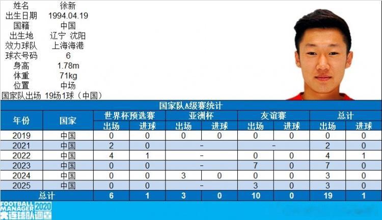 徐新曾效力于广州队、山东泰山队,目前效力于上海海港队。此外,徐新共代表国足出战19场,贡献了1个进球。