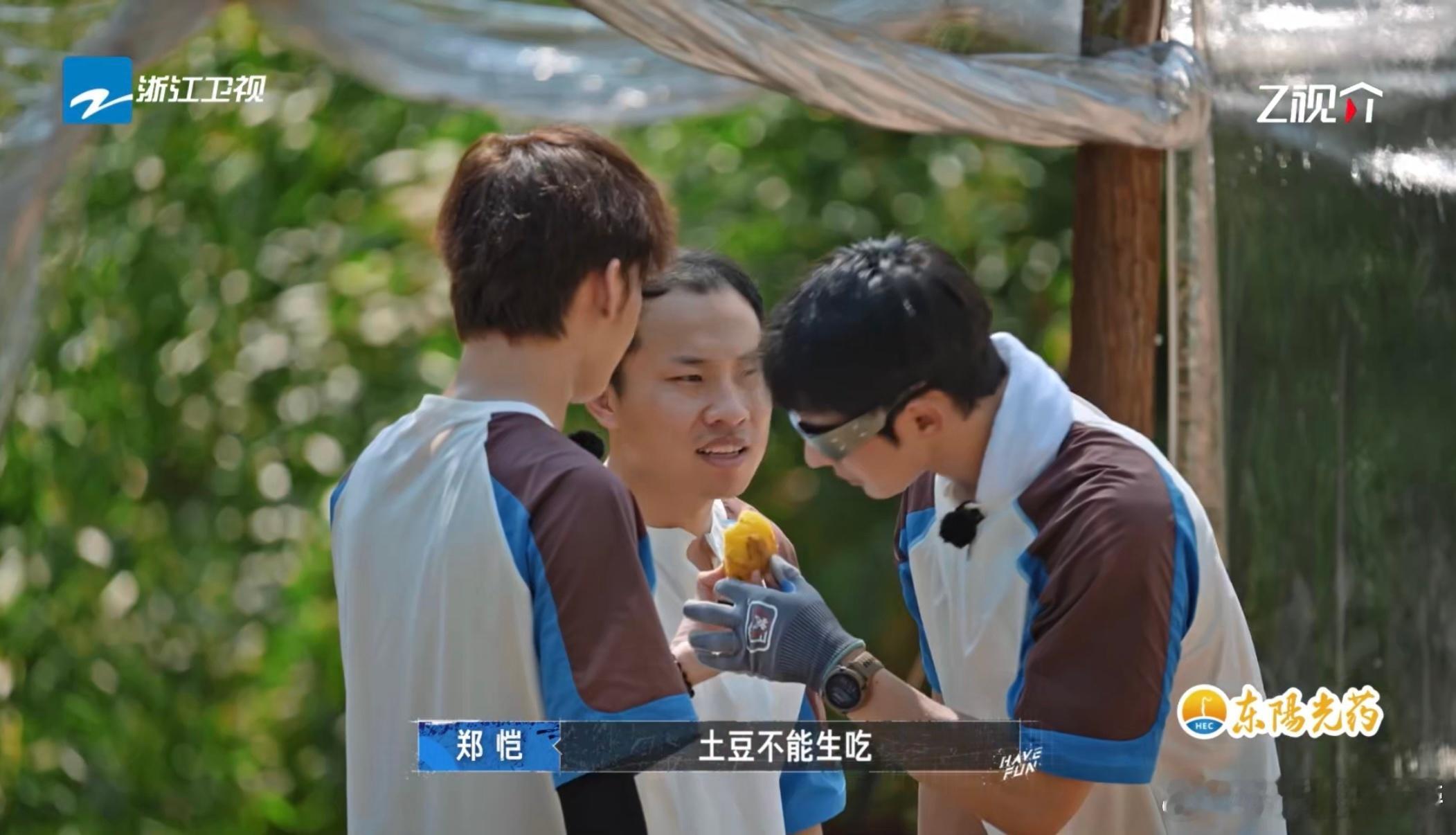 没人告诉王赫野生土豆不能吃吗嗨放派王赫野真是个吃货的代表人物,生土豆也敢啃,郑恺一提醒他有毒,他还坚持不改:“死也得吃”,这执着让人既好笑又佩服。