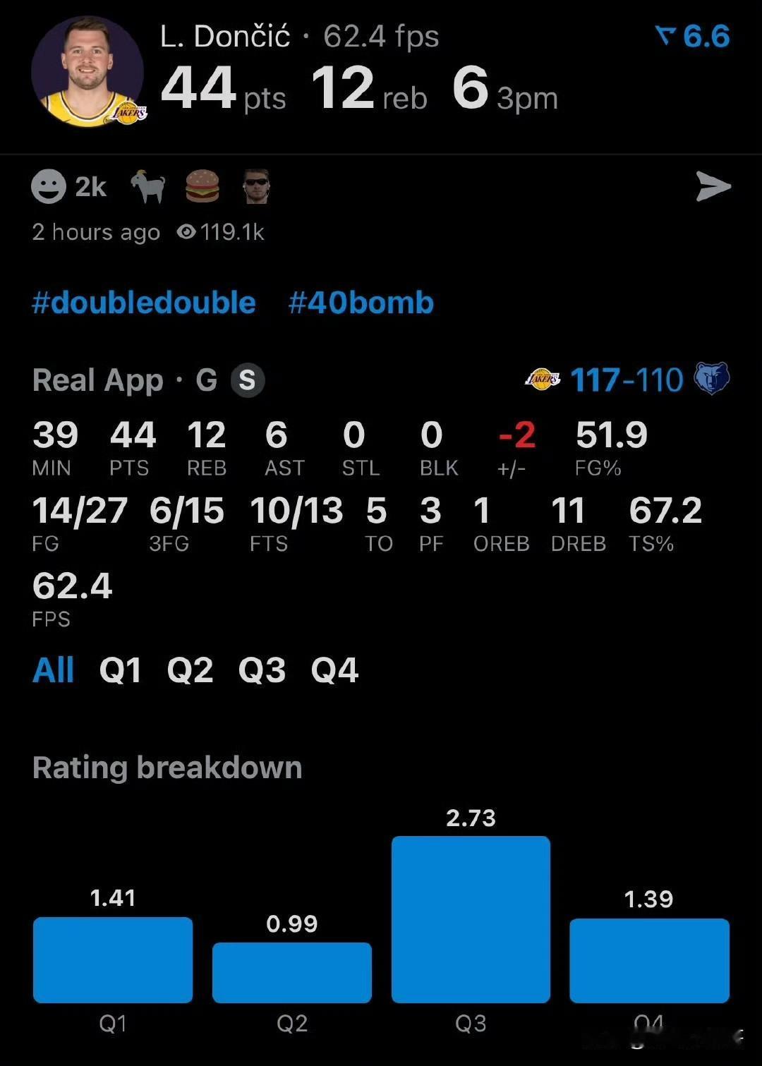 莫兰特8分!!!东契奇复出砍44+12+6,湖人客场胜灰熊获2连胜! 西部NBA杯赛,东契奇和斯玛特均正常出战,斯玛特也算是战旧主,凭借莫兰特的打铁发挥,湖人117-112客场战胜灰熊,收获2连胜。 东契奇复出就拿下44分12篮板6助攻的全面数据,得分对他来说简直没啥难度,轻松拿捏灰熊,而另外一位复出的斯玛特也有12分进账;里夫斯继续出色发挥,全场21+4+4,有了他和东契奇的双后场组合,湖人打的还算不错。 灰熊方面,新秀科沃德13分10篮板,本场比赛他手感不佳,高分4中0;而当家球星莫兰特同样表现拉垮,全场得8分,三分6中0,不擅长三分的人偏要投三分,你说说气人不。 湖人目前三核中,无论谁不在,总归会有一个人爆发,都具备带队的能力,等詹姆斯回归,三人的角色关系需要更清晰,湖人也会打的更加轻松。 东契奇 莫兰特 灰熊控卫莫兰特 湖人