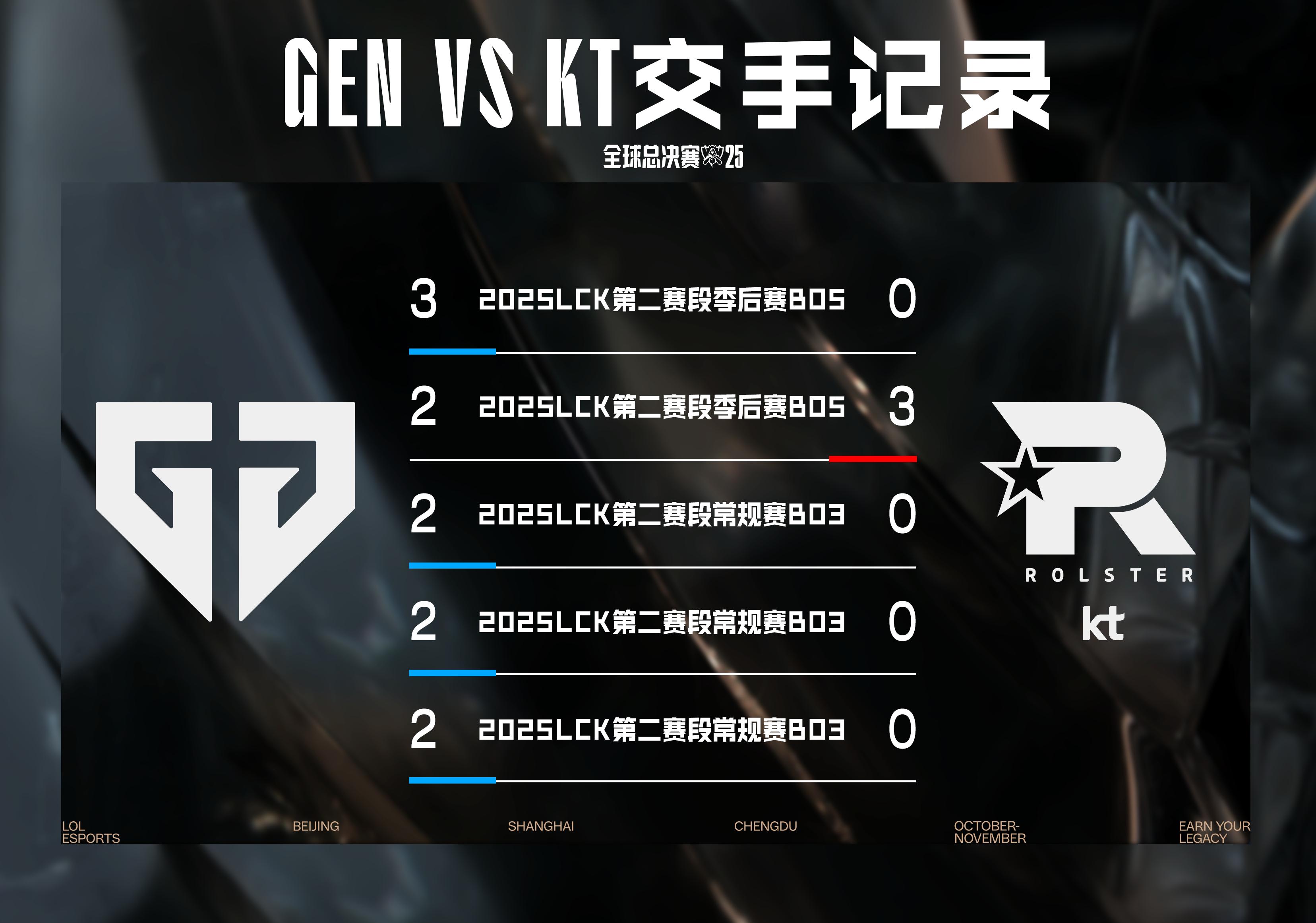 虎扑11月01日讯2025全球总决赛淘汰赛半决赛GEN对战KT-数据前瞻。