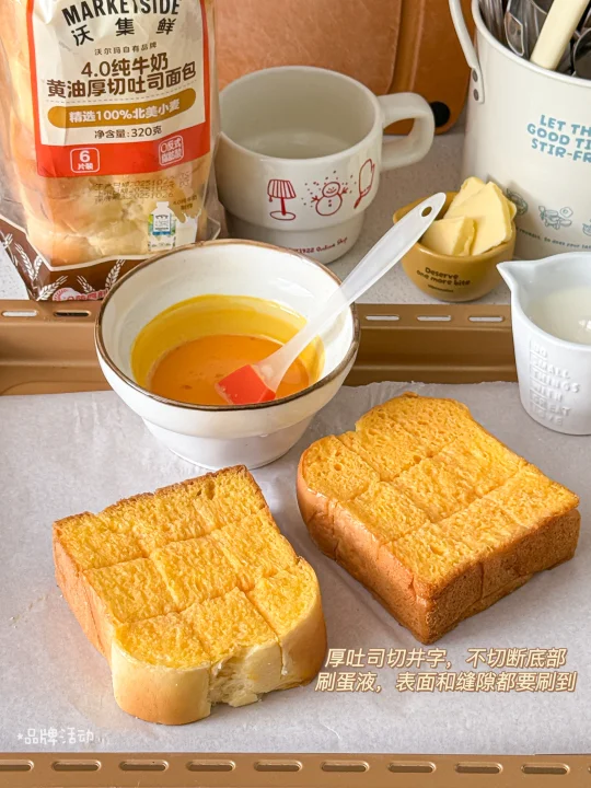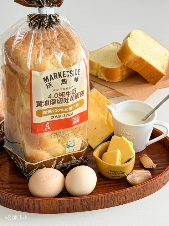 沃集鲜4.0黄油厚切吐司|黄油15g|蒜头一瓣|鸡蛋一个|芝士片一片|牛奶45g