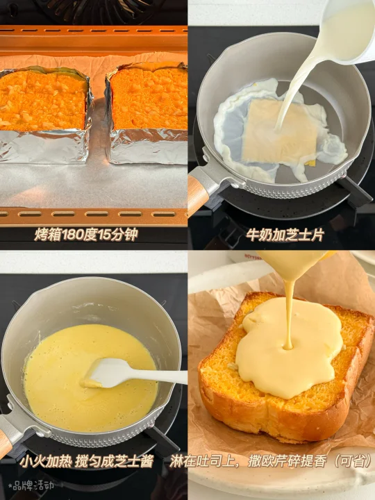 ▫️牛奶加芝士片,小火加热搅匀成芝士酱