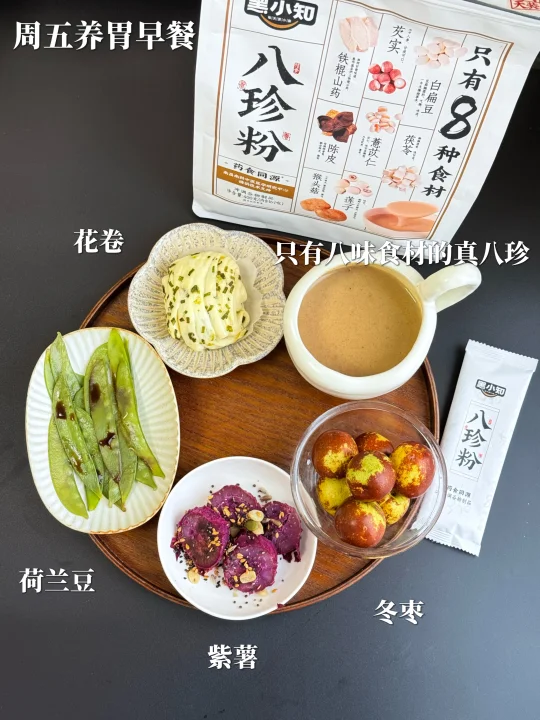 想要由内而外的健康美感,真的需要养肠胃。像这种八珍粉,八种养胃食材:山药、陈皮、猴头菇、芡实、薏苡仁、莲子、茯苓、白扁豆,没有其他添加剂,光山药含量有40%以上。
