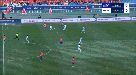 第16分钟,泰山首开记录!卡扎伊什维利右路拿球内切到弧顶一脚低射破门,泰山1-0津门虎。↓