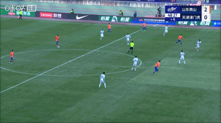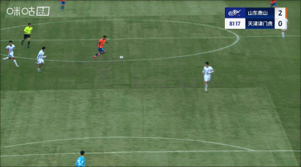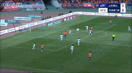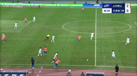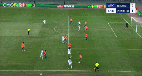 第87分钟,津门虎扳回一城!基莱斯右路弧顶连续内切扣球过人后点低射破门,泰山2-1津门虎。↓