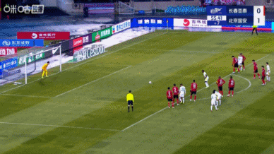 第18分钟,国安中路打穿长春亚泰的防线,法比奥单刀爆射被王智峰奋力扑出。↓