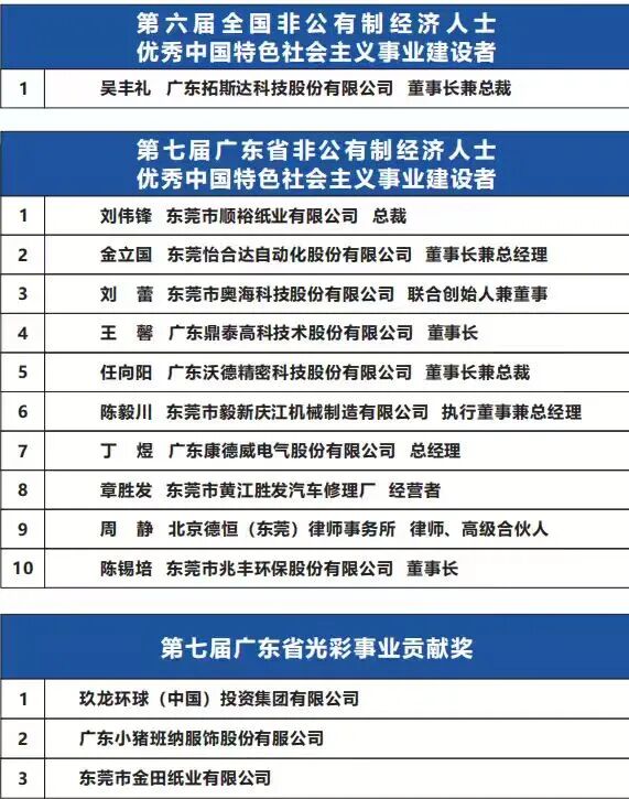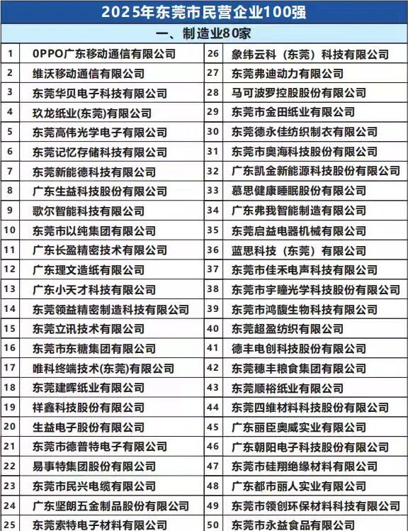 在“2025年东莞民营企业家日”到来之际,11月1日,2025年东莞民营企业荣誉榜单正式发布。这份沉甸甸的榜单涵盖全国、省、市多个层级荣誉,既表彰了勇担社会责任的优秀民营企业家,也盘点了在制造业、服务业领域深耕细作的龙头企业,全方位展现了东莞民营经济的硬核实力与活力。
