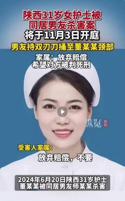 陕西31岁女护士被同居男友杀害案开庭,这背后的隐痛该如何抚平? 在爱情的字典里,本应满是甜蜜与温暖,可陕西31岁护士董某某的遭遇,却如一道深不见底的黑暗裂痕,打破了人们对美好感情的幻想。2024年6月20日18时,那是一个让董家人痛彻心扉的时刻,董某某被同居男友师某某残忍杀害 ,生命戛然而止。 从媒体报道中,我们得知这并非一时冲动的悲剧,而是长期暴力威胁的恶果。董先生从警方调查和女儿日记里,揭开了那段不堪回首的过往。原来,女儿生前一直生活在恐惧的阴影下,遭受师某某的言语威胁和暴力相向。案发当天,师某某刺伤董某某后,整整开了一小时车才报警,就这样,董某某错过了最佳抢救时机,鲜活的生命消逝,只留下家人无尽的悲痛。 如今,终于等来了开庭的消息。10月31日,我们从董某某家人处获悉,该案将于11月3日上午在西安中级人民法院开庭审理。可这迟来的审判,能抚平董家人心中的伤痛吗?能让逝者真正安息吗? 回顾这起案件,诸多细节令人痛心不已。师某某无正式工作,长期打零工,与努力上进、有着稳定工作的董某某形成鲜明对比。当初亲戚介绍他们相识时,恐怕谁也想不到会是这样的结局。更过分的是,师某某刻意隐瞒自己已婚育子的情况,以欺骗的方式开启这段关系,从一开始就埋下了悲剧的种子。 2024年3月的那次殴打,董某某选择报警,本以为能得到保护,可最终警方仅以“感情纠纷”对师某某进行批评教育。这样的处理,不仅没有让师某某收敛,反而让他变本加厉,暴力威胁成了家常便饭。董某某的日记里,满是恐惧与无助,可她却因善良和软弱,没能及时摆脱这可怕的“魔掌”。 当我们为董某某的遭遇感到愤怒和惋惜时,更应该反思:在亲密关系中,如何才能避免这样的悲剧再次发生?是女性自身要提高警惕,不被花言巧语迷惑,勇敢对暴力说“不”;还是社会和执法部门,在面对此类“感情纠纷”时,能有更严格的处理机制,真正保护受害者的安全?这起案件不只是一个家庭的悲剧,更是给全社会敲响的警钟。希望法律能给出公正的裁决,告慰董某某的在天之灵,也希望这样的悲剧不再重演。大家对此有什么看法呢?快来评论区留言讨论吧!