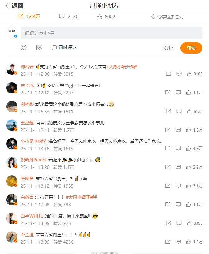 众星为昌隆宣传新剧大厨小婿金晨疯狂扣1为昌隆宣传新剧大厨小婿昌隆 锅铲在手,天下