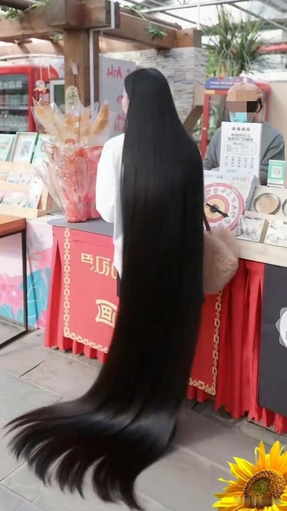 见过衣服拖地的,还没见过头发拖地的!这姑娘的头发也太长了,跟黑色瀑布似的,走哪儿拖哪儿,真怕她上厕所时头发一不留神就点马桶里,那画面想想都绝了。 要说这头发要是卖了,能值多少呢?听说头发回收挺值钱的,尤其是这么长还这么顺的,少说也得上万吧,够买好几个新包包了。不过话又说回来,留这么久的头发,感情肯定深,哪能说卖就卖。就冲这回头率,走在街上那绝对是独一份的风景,赚的眼球可比卖头发值当多了!