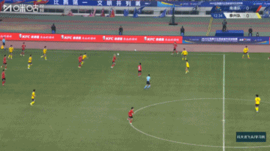 第26分钟,南通队任意球开至禁区制造威胁,李贤成底线前传到中路被破坏。↓