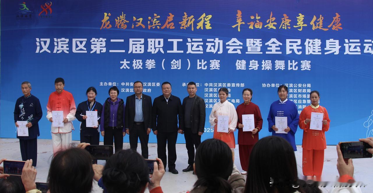 瀛湖上演太极“论剑”!汉滨区17支代表队刚柔并济展风采 11月1日,汉滨区瀛湖镇迎来一场太极盛会!近200名太极爱好者齐聚一堂,参加第二届职工运动会暨全民健身运动会太极拳(剑)和健身操舞比赛,湖光山色间尽显刚柔并济的太极魅力。 本次比赛由汉滨区老体协太极拳分会精心策划,瀛湖镇镇政府全力支持。来自江南、江北及高新区的17支代表队精神抖擞,先后进行了太极剑与太极拳的比拼。赛场上剑影流转,拳风绵延,各代表队轮番展现精湛技艺,将传统武术的韵律之美演绎得淋漓尽致。 经过激烈角逐,陈家欣会长宣布赛果:金州广场阳光队、金州广场中心队、紫微代表队等7支队伍斩获优胜奖;香溪活动站队、竹园小区代表队、北城公园队等10支队伍获得优秀奖。 以赛促练,以武会友!当行云流水的太极,遇上烟波浩渺的瀛湖,这不仅是一场赛事,更是一幅流动的山水画。全民健身的理念,也在这拳风剑影中深入人心。江湖不远,就在汉滨的青山绿水之间!