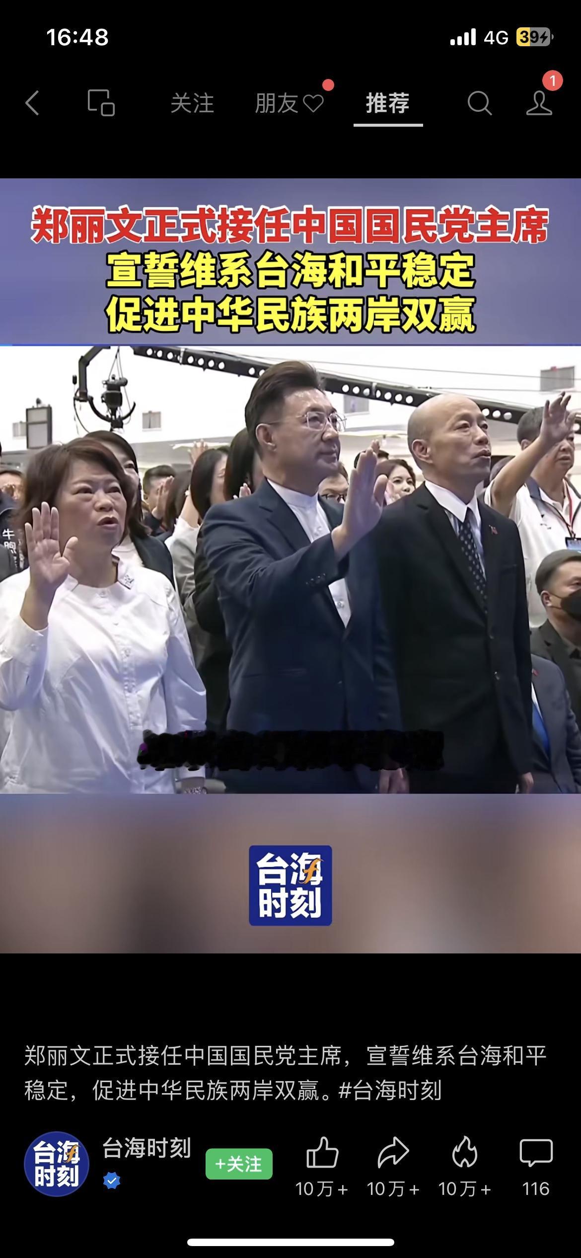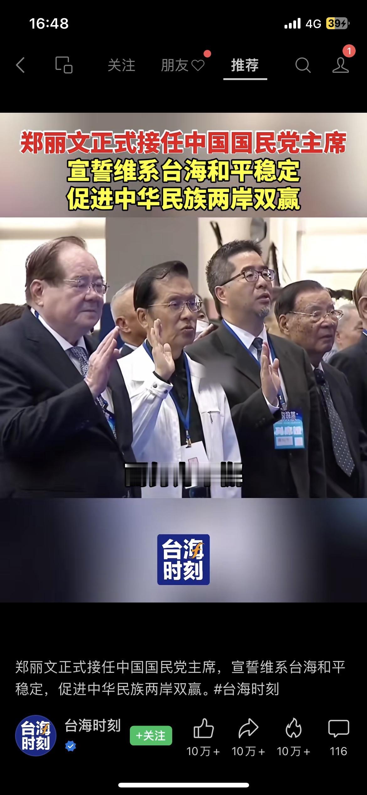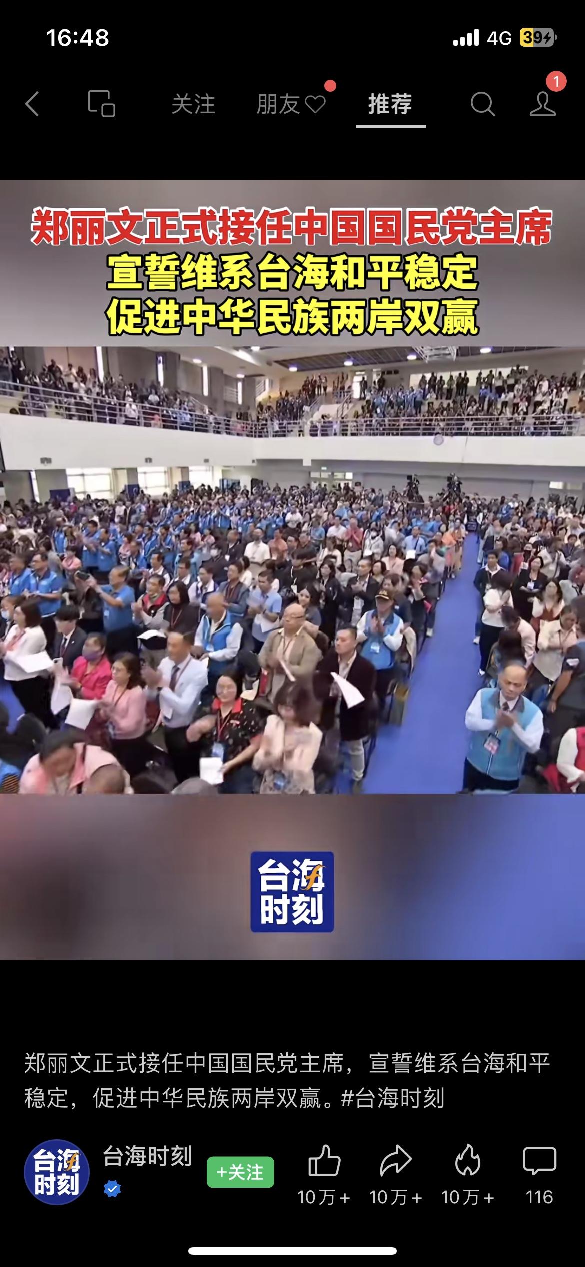 刚刷到个事儿——郑丽文今天在国民党党代会上接任主席了! 11月1号这会,她直接说要‘稳台海和平,促两岸双赢’。 害,咱普通人也不懂别的,就盼着两岸能一直顺顺当当的,本来就是一家人嘛~ 你们觉得这算不算个不错的信号?来评论区唠唠! 台海时刻
