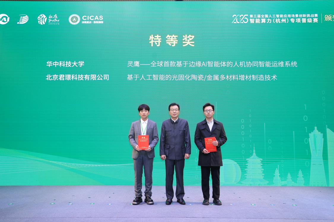 另一特等奖项目“基于人工智能的光固化陶瓷/金属多材料增材制造技术”团队来自北京君璟科技有限公司,其以算力为基,采用“增材制造+减材加工+终端设备”垂直整合模式,在工业级高精度陶瓷增材领域率先实现突破,累计形成80余项技术成果,为算力深度融入实体经济发展树立标杆应用案例。