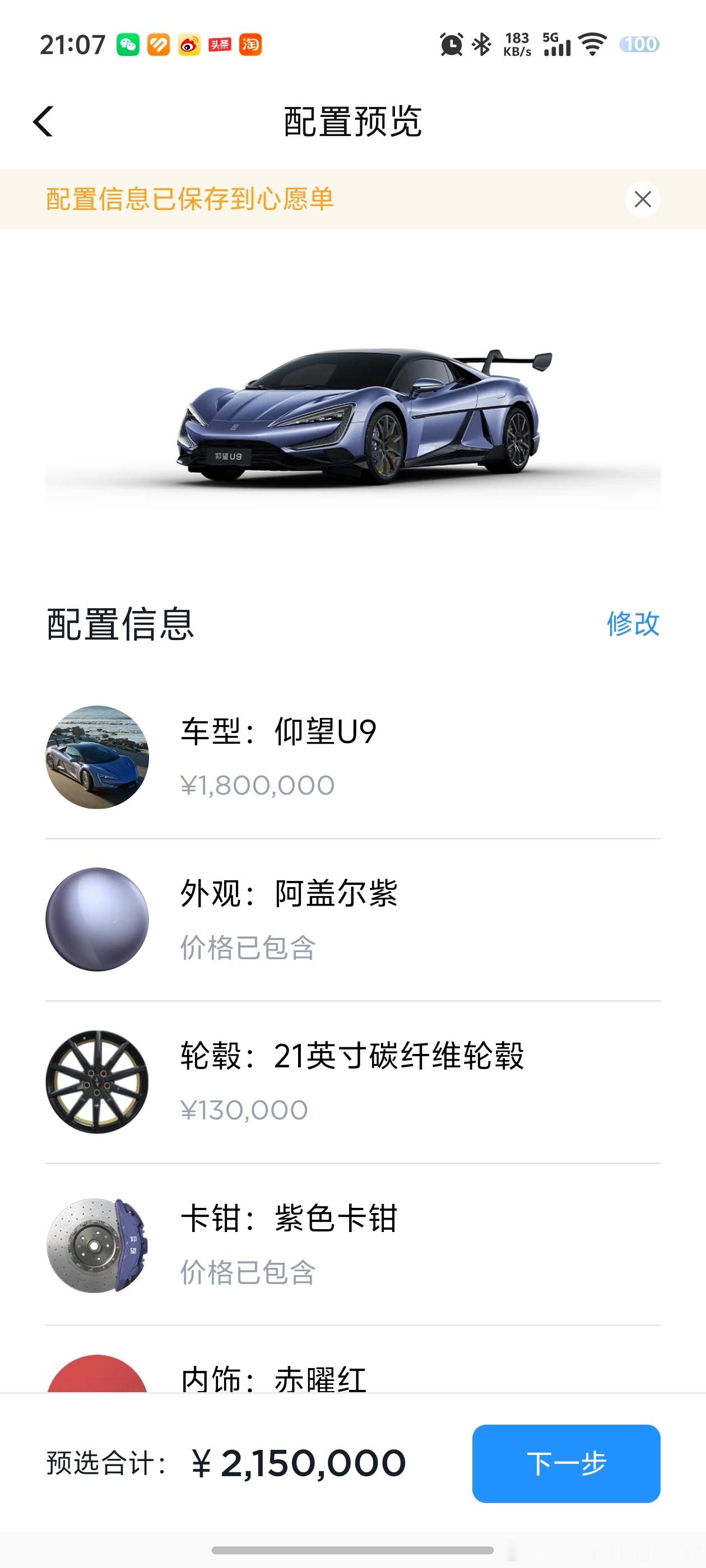 最基础的仰望U7,全部选装也都736000元了;仰望U9选配完直接215万;仰望U8L选配完也超过140万了。