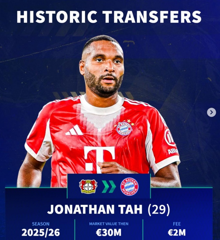 直播吧11月1日讯拜仁将在本轮德甲焦点战对阵勒沃库森,若纳坦-塔对阵旧主,《转会市场》也列出了新世纪两队之间的转会: