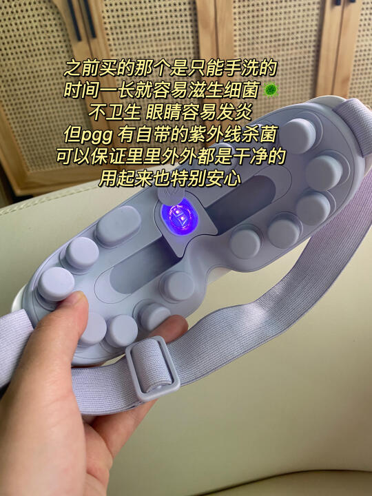 PGG眼部按摩仪水箱自带紫外线清洁,用完直接杀菌就行了,而且水箱注水口够大,自己拿下来清洗也很方便,姐妹们一定要注意水箱卫生哦!