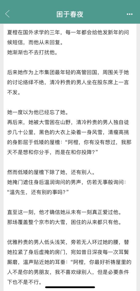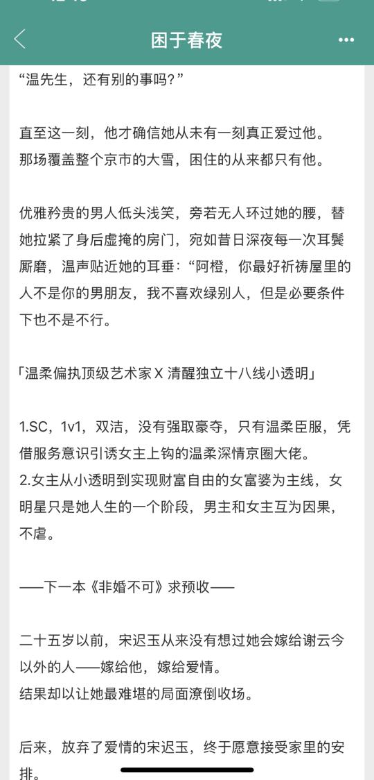 男主伪浪子真深情,看着在玩弄女主,其实一直为女主的前途保驾护航,结果在他想结婚的时候,女主不要他了~ ㅤ 女主前期仰望男主,后来一步步实现自己的理想,和男主从上下位,变成势均力敌~ ㅤ 不虐,好看~后期轻微火葬~只爽没虐~