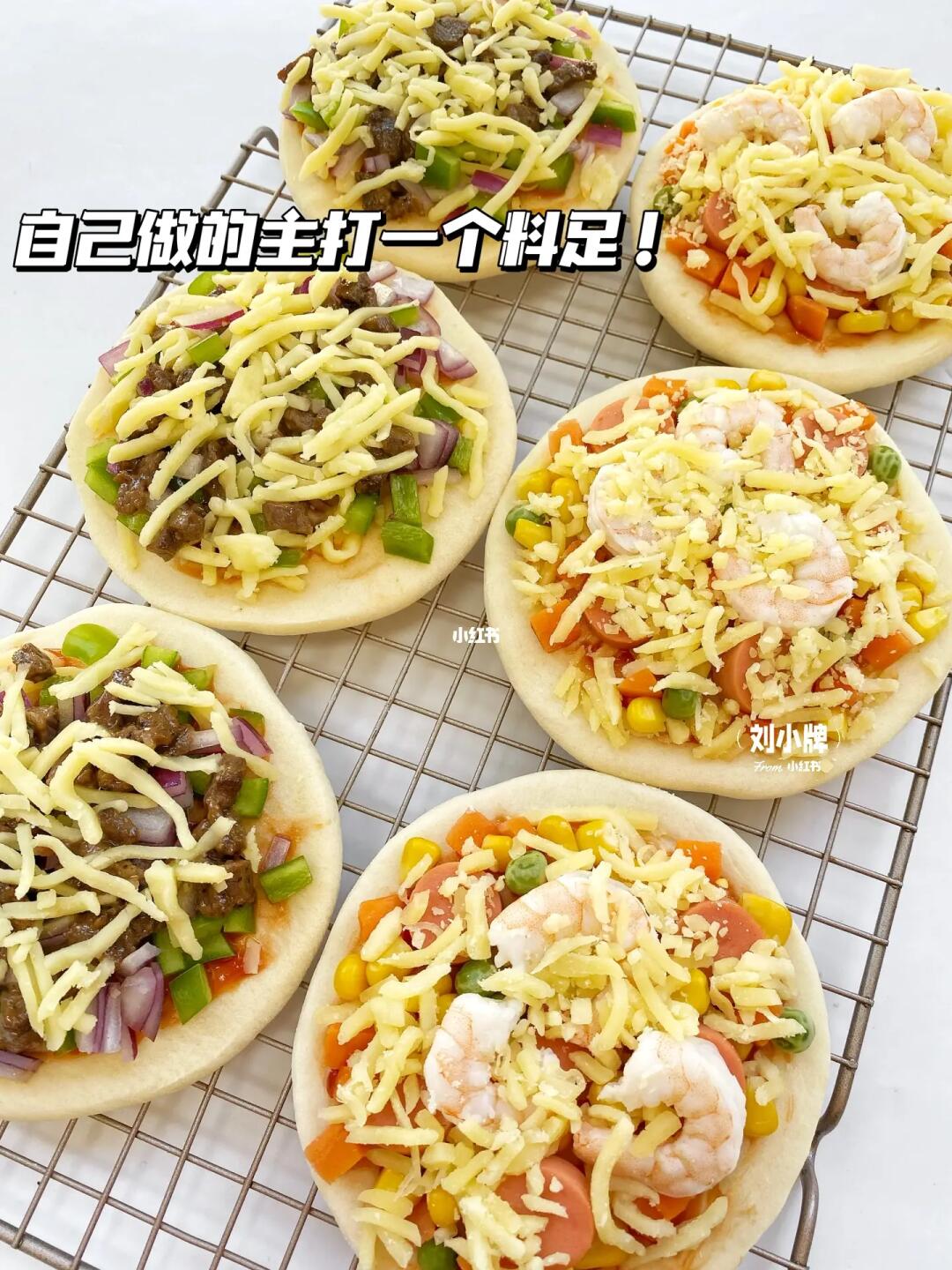 🍕今天在家解锁了一直想做的迷你小披萨,自己做的披萨饼皮敲松软,馅料更是可以随意搭配,想放多少放多少。