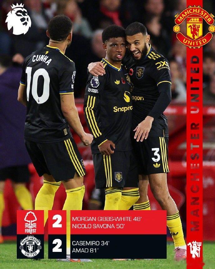 “诺丁汉森林和富勒姆的英超四连败都结束了,森林队还是靠边中结合与拼高空球争第二落点找到机会,这种“时髦打法”各队的防守都没找到有效的应对方式。曼联尽管三连胜告一段落但已经比上季做客城市球场有进步,迪亚洛补时有绝杀机会的。本场两个边锋纵向回防没上周那么卖力,所幸对方不擅长地面渗透。阿莫林上任以来首次连续两场比赛用同样首发阵容,这些球员能比较好地贯彻他的战术思路,但如何让更多的替补球员融入球队,是他的下一个任务。”