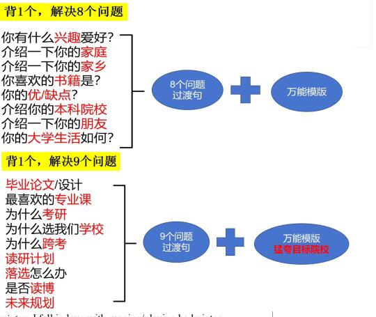 不管问什么问题都可以引到某一个兴趣上来,这样考研复试要背的英语就很少,能流畅说出来就已经秒杀90%的人!!