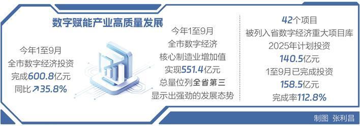 从乌镇辐射全市,嘉兴聚焦数字经济重大项目建设,以有效投资拉动制造业能级跃升,全力构建现代化的数字赋能产业体系。数据显示,今年1至9月,全市数字经济投资完成600.8亿元,同比增长35.8%;其中42个项目被列入省数字经济重大项目库,2025年计划投资140.5亿元,1至9月已完成投资158.5亿元,完成率112.8%。持续强劲的数字经济投资,正为传统产业转型升级注入核心动力。