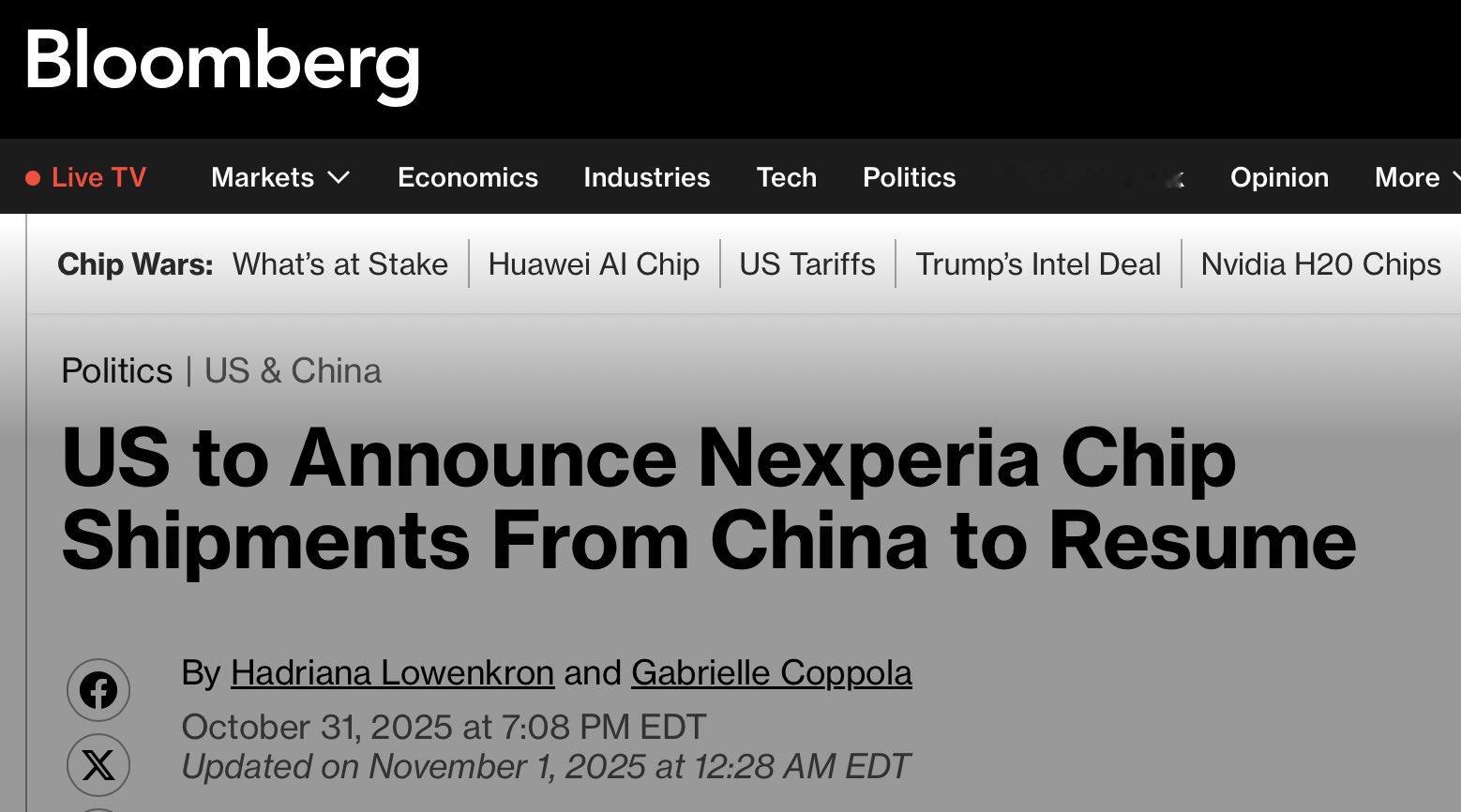 🔻11 月 1 日:中国商务部宣布将允许安世半导体中国向符合条件的用户出口,以免影响全球供应链。