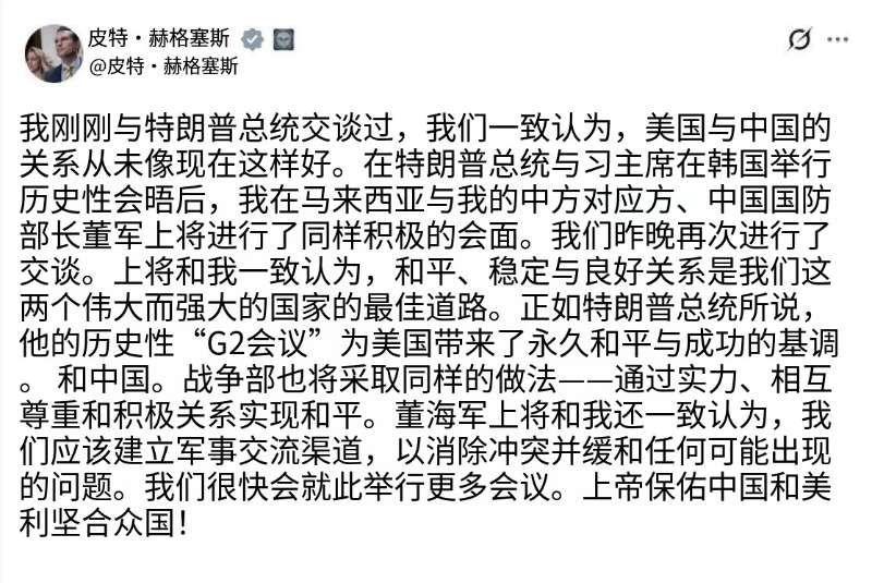 美国战争部长赫格塞斯:一效忠!二高举!三紧跟! 亦步亦趋,就是小丑,活脱脱滴小丑一个。 哈哈哈哈哈哈哈![看][允悲][马思纯的微笑][马思纯的微笑][马思纯的微笑] 但是,世界金融霸权帝国主义本性是不会变的啊。 美国战争部长 赫格塞斯