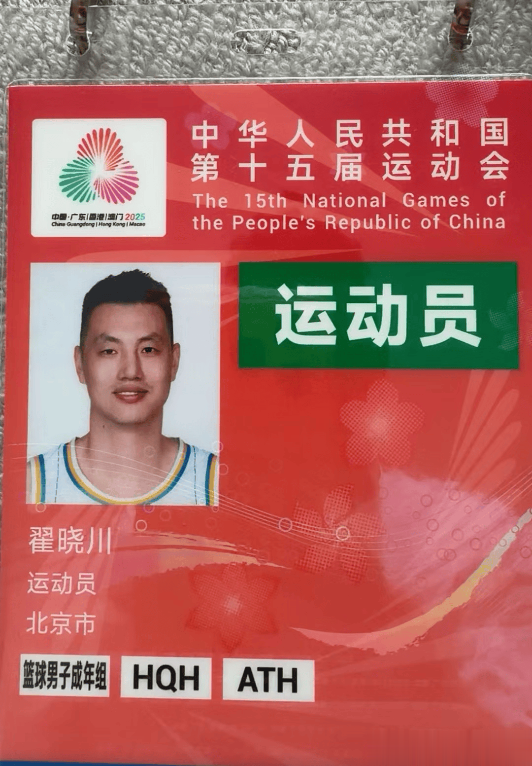 翟晓川更新社媒晒全运会证件照:北京男篮全运会加油