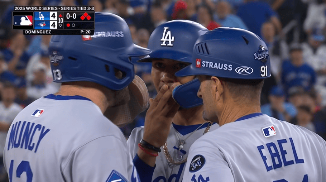 虎扑11月02日讯MLB总决赛第七场,第九局上道奇追平比分。
