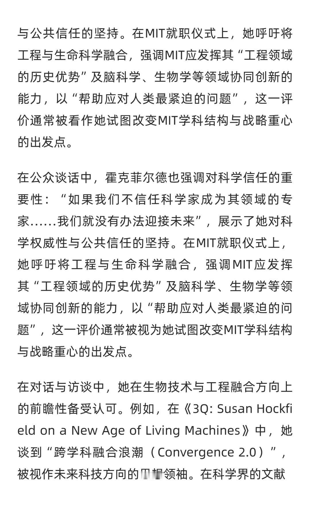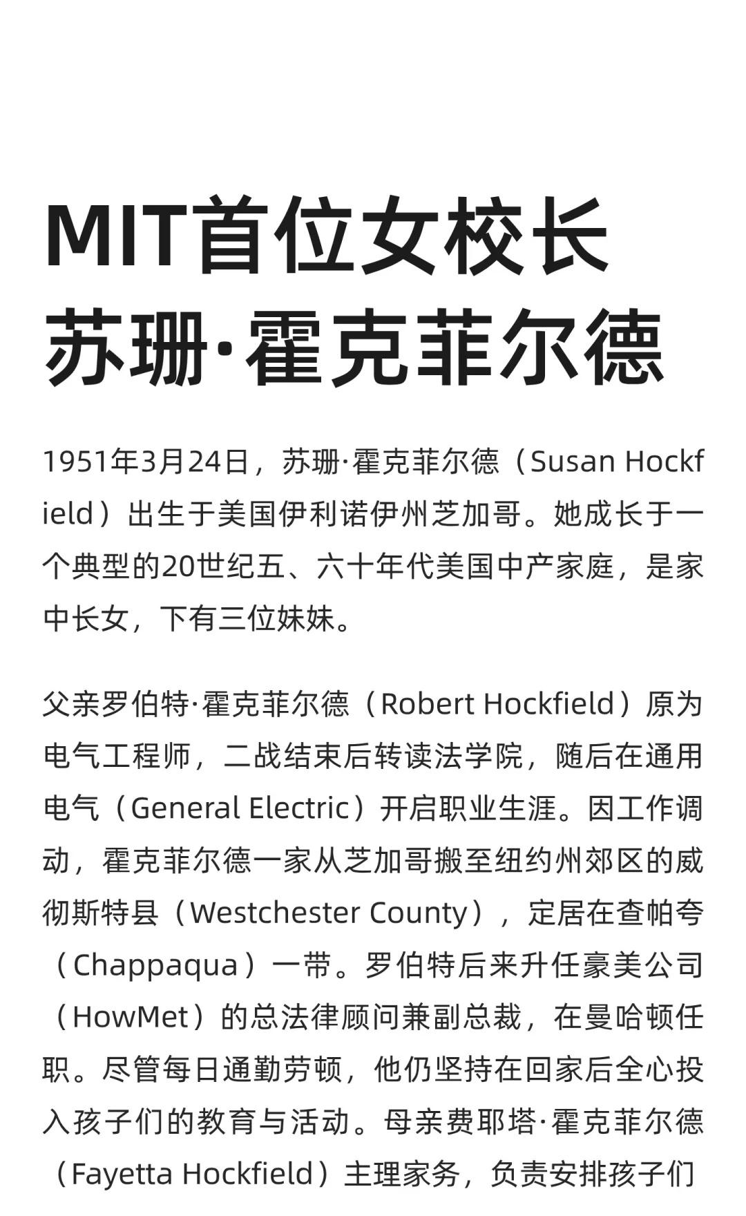 MIT首位女校长苏珊·霍克菲尔德 女性力量 科技向善 MIT 校长 令你感动的女