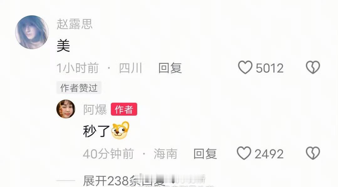 网红阿爆宣传赵露思新歌,配的文案是秒了,赵露思评论她后,她又回复了一次秒了