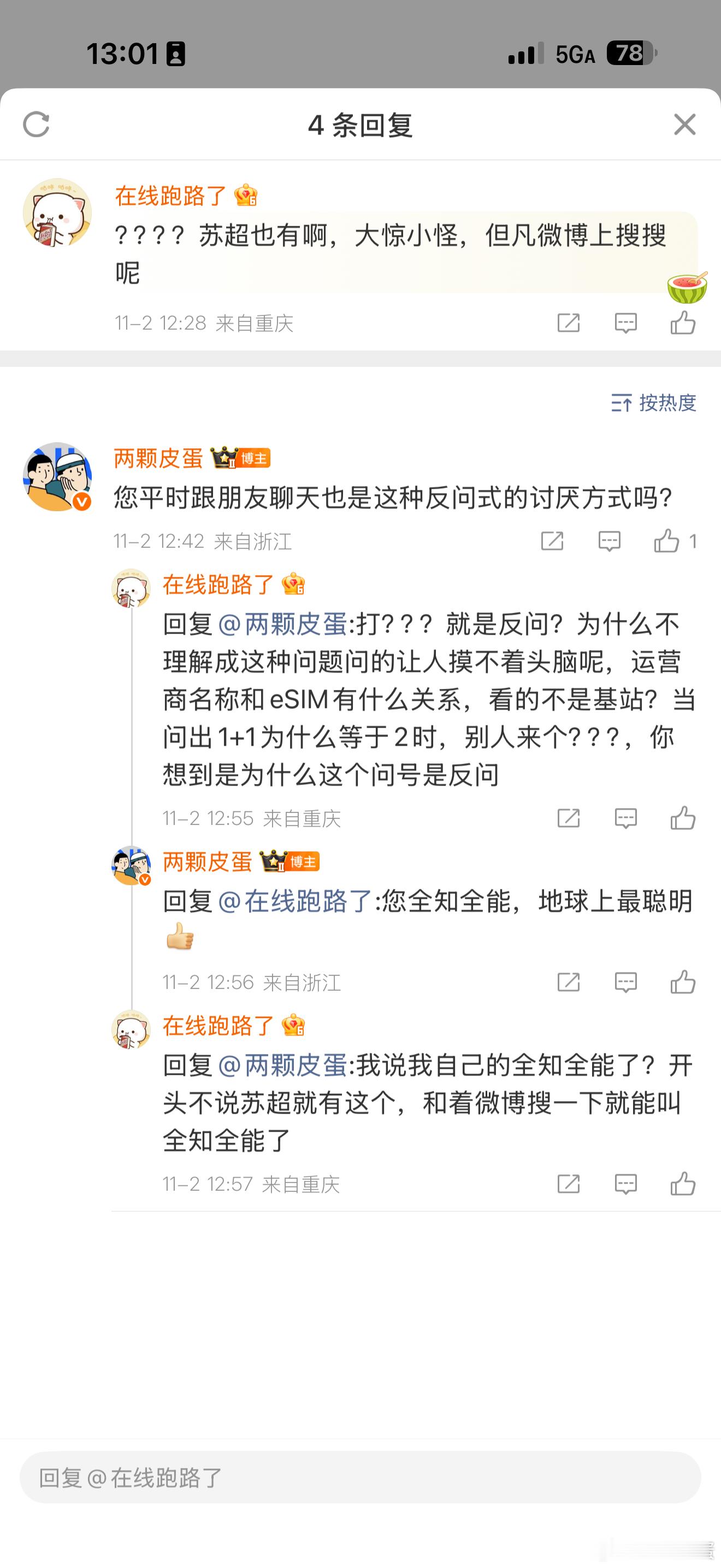 您了解这个事情的原委,对真实情况是什么做了一些补充我认可。但我不喜欢反问的沟通方式,无论是工作还是生活。既然你选择了用这种方式跟我说话,我就没办用正常的方式和你沟通。