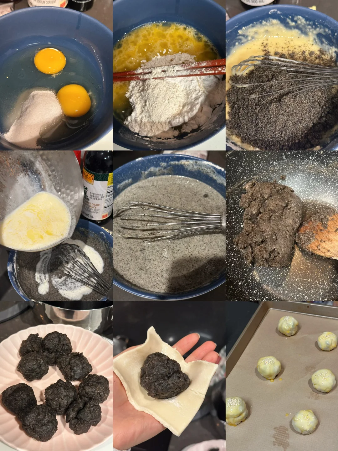 复刻了香港老牌点心恒香饼家的招牌黑芝麻酥,参考了的馅料配方,根据手头的食材略作调整。和江南人士吃惯的黑洋酥还不太一样!加入了牛奶,奶油和鸡蛋的调和,黑芝麻的涩感被大大降低,坚果种籽的油香酥润之余还多了醇厚的蛋奶味和柔糯的质感。怎么说,有点像法式烘焙almond croissant里almond paste的质感!