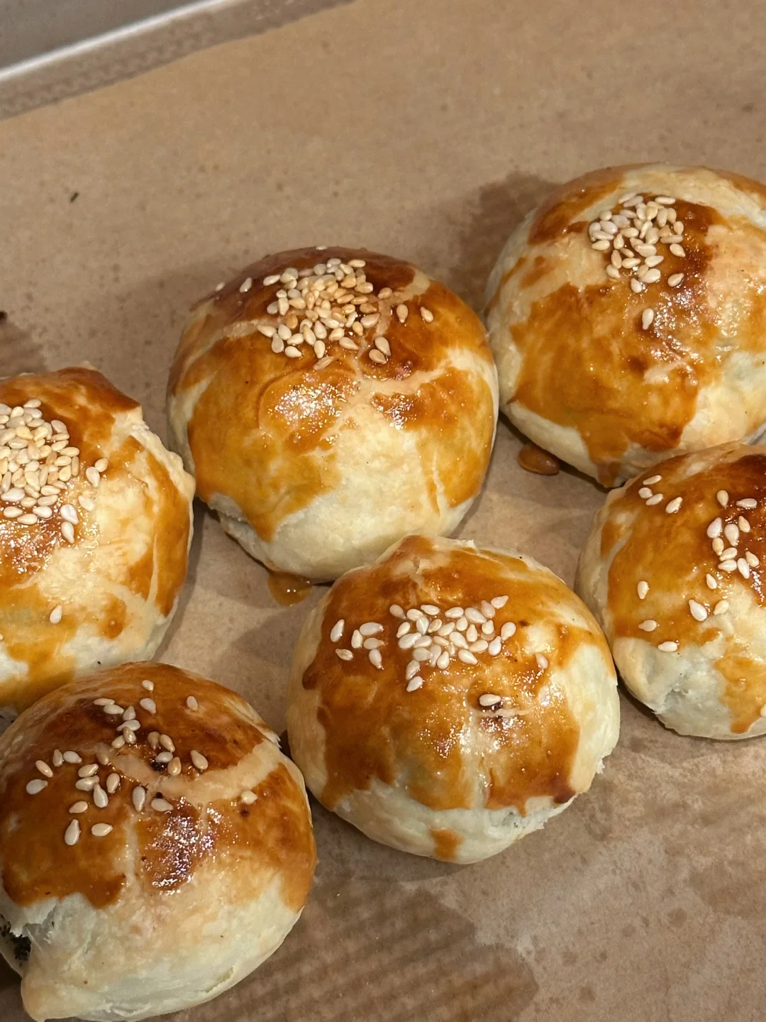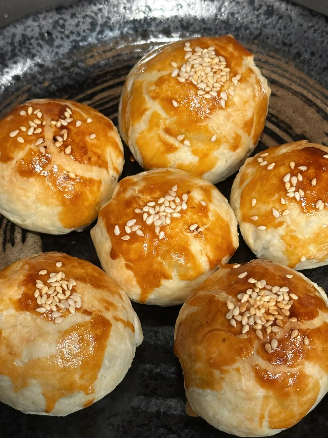 用了缺德舅这一季的现成酥皮,效果一如既往的满意不出错,薄薄的酥皮包大大的馅料,烤出来依旧层里分明!
