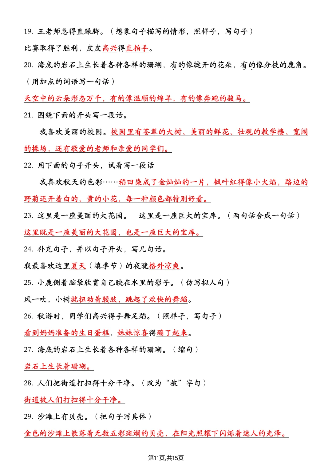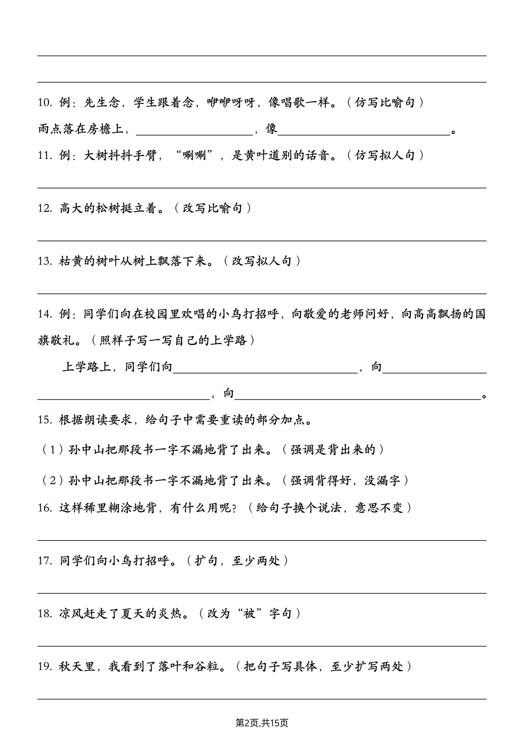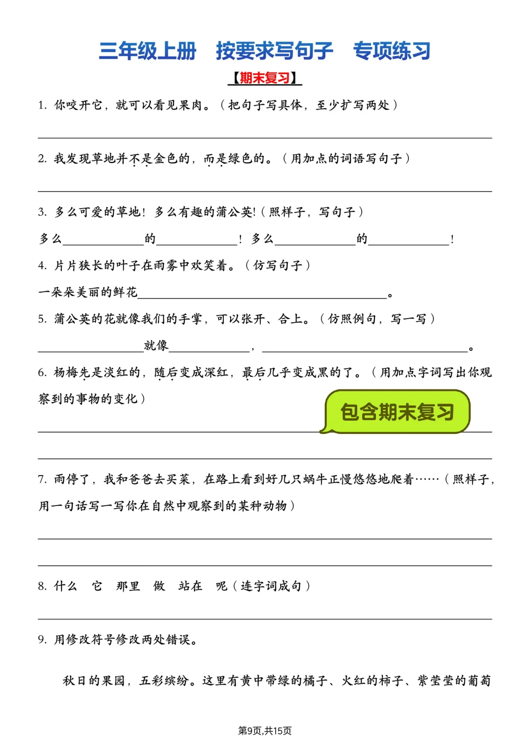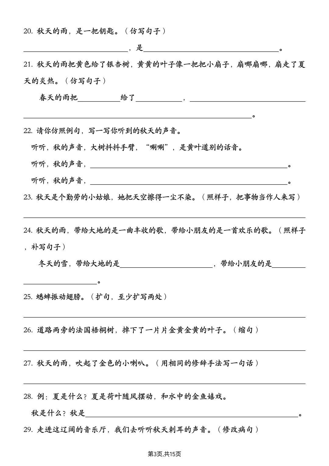 ⏰救命!三上语文期中复习——句子练习📖