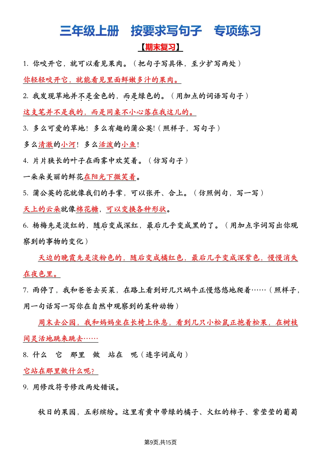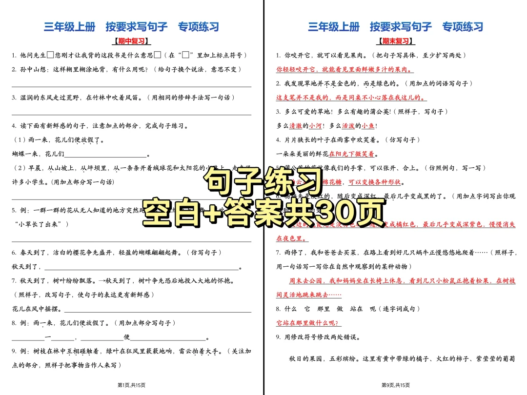 句子练习总踩坑:题量少❌没答案❌批改难❌ 这次整理的【三年级上册句子专项】绝了! ✅15 页空白版:沉浸式练题型 ✅15 页答案版:家长秒批改不费脑 仿写 / 病句 / 连词成句👉全是考点! 练完基础稳 + 答题会,期末有底气💪 👉要的家长看左下角店铺! 还有语文字词 / 选择、情境理解性默写等专项 一套搞定复习,不用瞎找资料啦~ ⚠️原创整理!禁转载 / 商用! 只帮真正需要的宝妈宝爹~