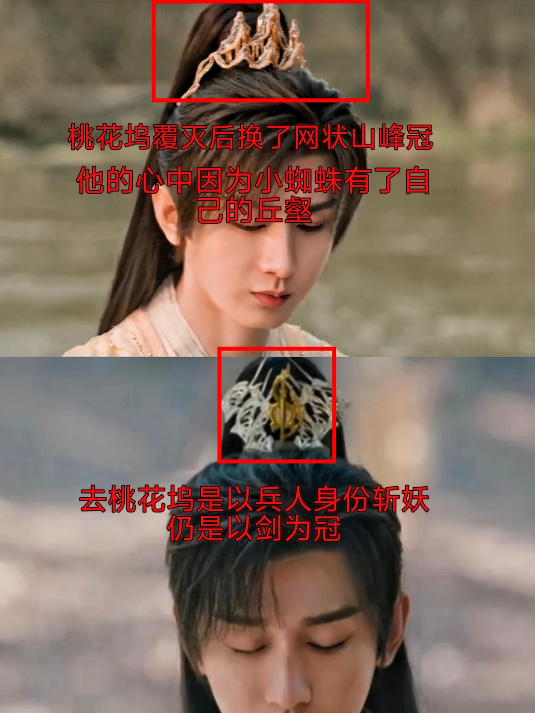 ⛰️在经历桃花坞一夜覆灭后,他的冠换成了山形冠,山峰又是由网状勾勒。