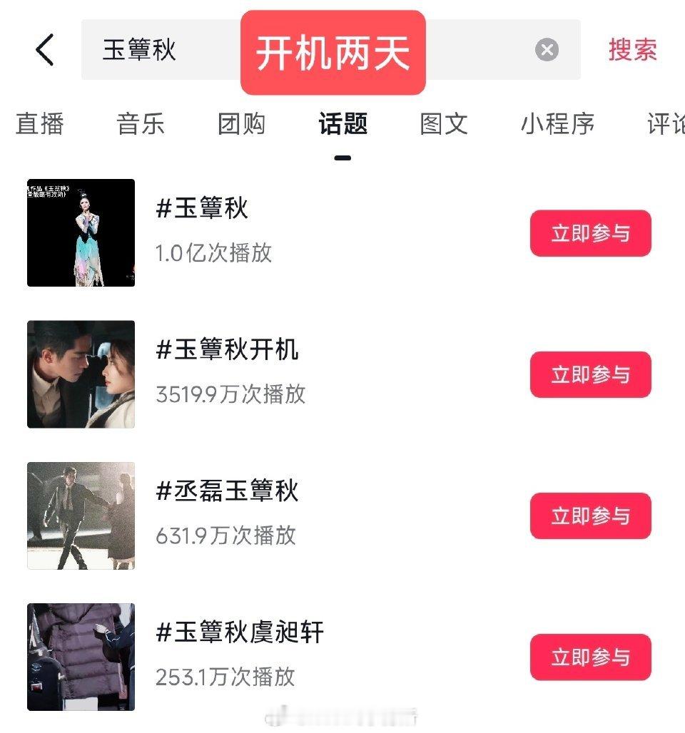 玉簟秋开机三天抖播放量已经破亿了,丞磊虞昶轩播放量0开始算,这部真是从0开始的i