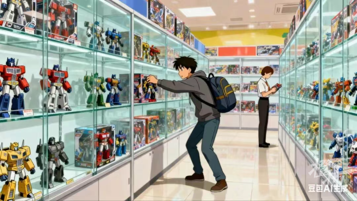新款擎天柱变形金刚吸引了他的目光,但一千多元的售价让他望而却步。