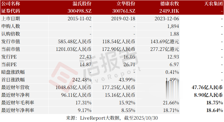 同行业IPO可比公司:温氏股份、立华股份、德康农牧