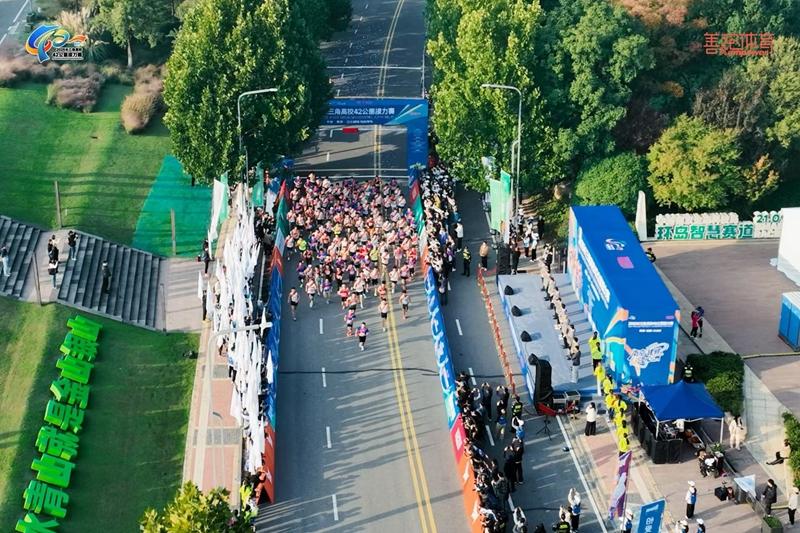11月2日,2025长三角高校42公里接力赛在南京建邺区江心洲鸣枪起跑,来自长三角地区三省一市的100余所高校、近200支代表队参赛。