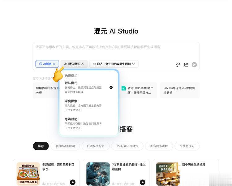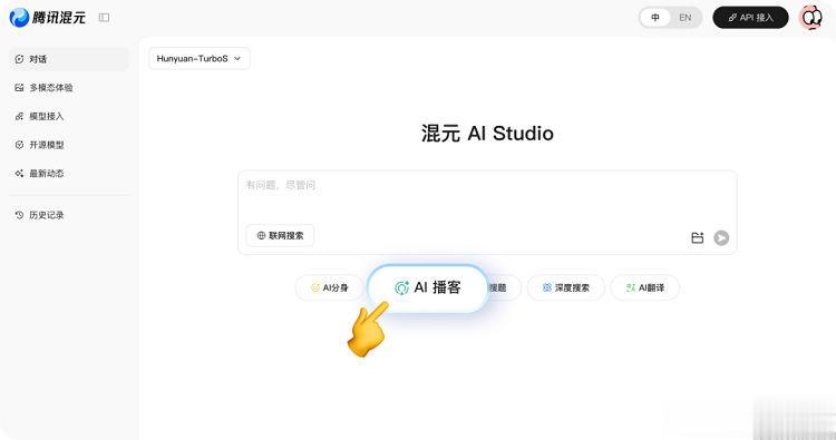 据腾讯混元方面介绍,基于大模型意图识别、长上下文理解、多轮对话和外部联网检索能力,交互式AI播客能够结合上下文以及背景信息,更准确地给出答案。目前用户使用电脑访问腾讯混元官网,点击首页对话框下方“AI播客”即可体验。